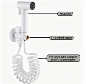 Dieser Bidet-Sprühkopf besteht aus hochwertigem, lebensmittelechtem ABS-Harz und ist auf Langlebigkeit ausgelegt. Es bietet außergewöhnliche Schlagfestigkeit, hohe Temperaturbeständigkeit und Rostschutzleistung und sorgt so für eine hygienische, langlebige Lösung für Ihr Badezimmer, die billige Kunststoffalternativen bei weitem übertrifft.