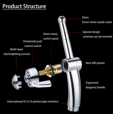 Unser Bidet-Sprüher verfügt über eine silberne 7-Loch-Düse, die einen weichen, gleichmäßigen und kraftvollen Wasserfluss liefert. Es sorgt für eine sanfte, gründliche Reinigung für die persönliche Hygiene und sorgt gleichzeitig für einen starken Druck für eine effektive Toiletten- und Oberflächenreinigung, perfekt für alle Ihre Badezimmerbedürfnisse.