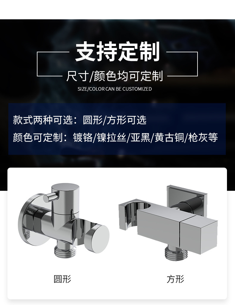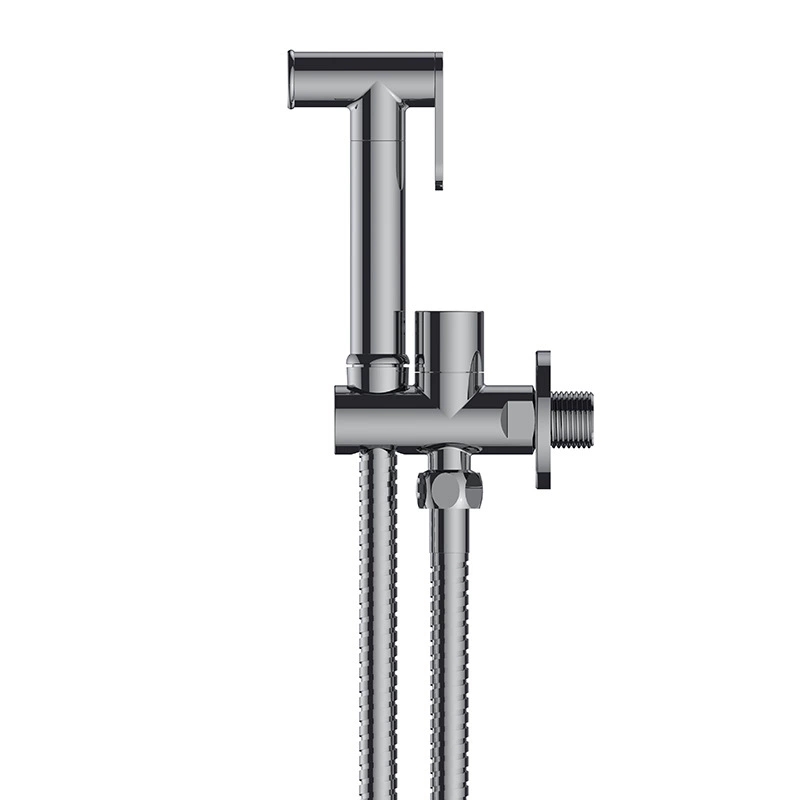 Sein Hauptzweck besteht darin, eine multifunktionale, auslaufsichere und platzsparende Lösung für die Installation einer Handbrause/Bidetbrause im Badezimmer bereitzustellen, die einen Wasserauslassanschluss, einen Winkeladapter und eine Halterung in einem kompakten Design integriert. Das Produkt verfügt über eine erstklassige Struktur aus massivem Messing: Der Wasserweg, die Gewindeverbindungen und die tragenden Teile, die direkt mit Wasser und Wand in Kontakt kommen, sind aus hochreinem Messing gefertigt, um lebenslange Korrosionsbeständigkeit, Rostschutz und kein Wasserleck zu gewährleisten. Die Oberfläche wird strengen Polier- und Verchromungsprozessen unterzogen und bietet eine spiegelglänzende, glatte Oberfläche, die resistent gegen Wasserflecken und Fingerabdrücke ist und sich mit nur einem Wisch leicht reinigen lässt.
